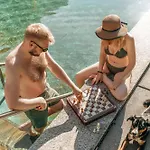 お客様は季節限定の屋外プールでくつろぐことができます。